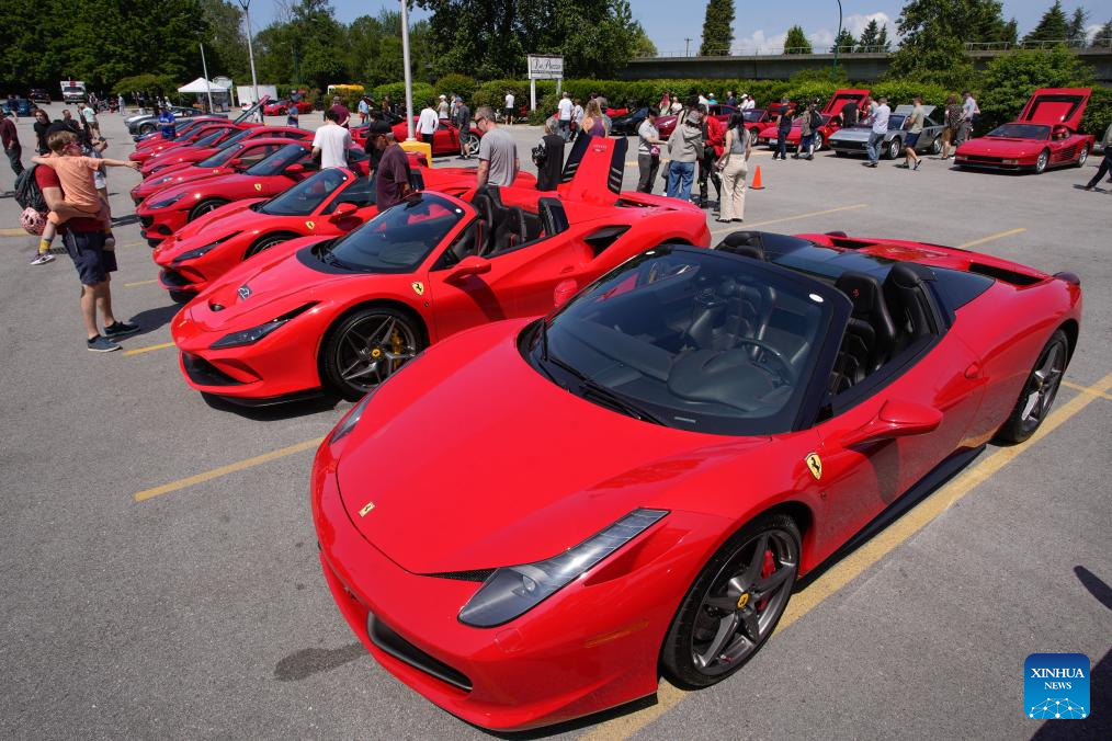 Supercars are on display during the "Classica Auto Italiana" event in Vancouver, British Columbia, Canada, June 15, 2025. Featuring over a hundred Italian classic and supercars, the one-day event was held in Vancouver on Sunday. (Photo by Liang Sen/Xinhua)