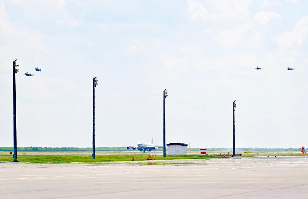 This photo taken on June 16, 2025 shows fighter jets of Kazakhstan's air defense forces escorting Chinese President Xi Jinping's plane after it entered Kazakh airspace. Chinese President Xi Jinping landed in Astana on Monday to attend the second China-Central Asia Summit at the invitation of Kazakh President Kassym-Jomart Tokayev. (Xinhua/Zhai Jianlan)