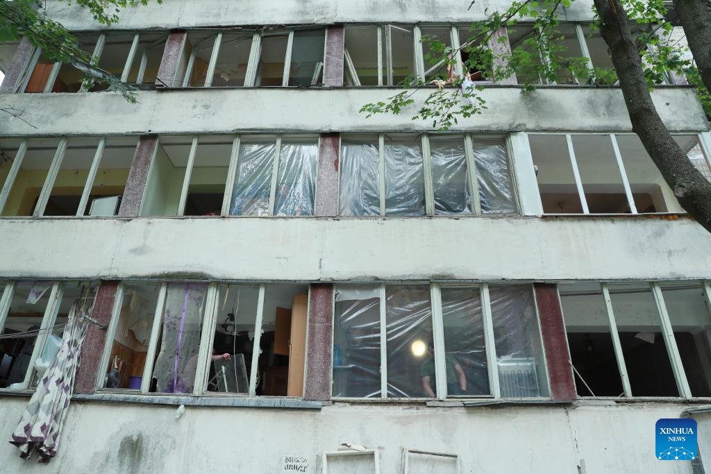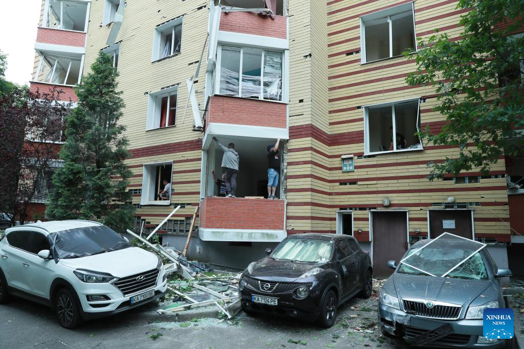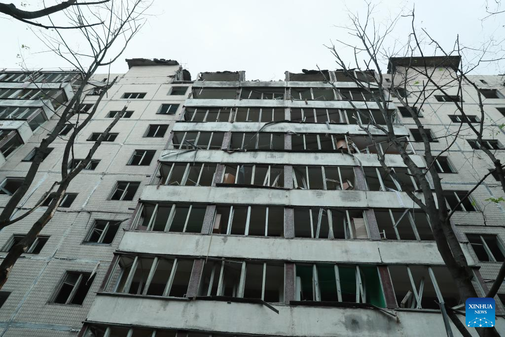 This photo taken on June 17, 2025 shows a building damaged in a Russian missile attack in Kiev, Ukraine. (Xinhua/Li Dongxu)
