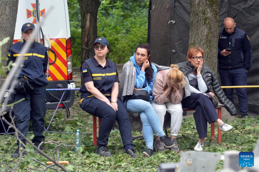 KIEV, June 17 (Xinhua) -- At least 15 people were killed and 75 others injured in Russian missile and drone strikes on Ukraine overnight Tuesday, Ukrainian Interior Minister Ihor Klymenko said in a statement.