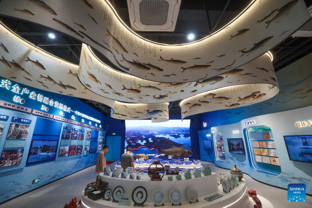 People visit the Qiandao Lake Fish Museum in Chun'an County, east China's Zhejiang Province, June 3, 2025. Chun'an, located in east China's Zhejiang Province, is renowned for its water system and outstanding natural environment. As a national-level ecological county, it serves as a model for ecological protection and construction. (Xinhua/Xu Yu)