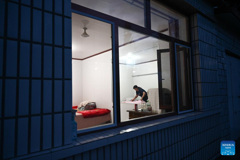 Saintsogt's wife arranges bedding at home before departing for the summer campsite on Ar Horqin Grassland, Chifeng City of north China's Inner Mongolia Autonomous Region, June 13, 2025.