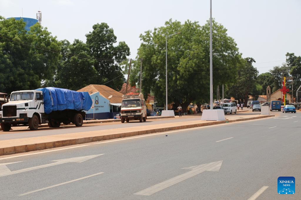 This photo taken on June 15, 2025 shows shops alongside a highway constructed by a Chinese company in Safim, Guinea-Bissau. The China-funded highway, which links the capital Bissau to its suburb of Safim, inaugurated on June 16.