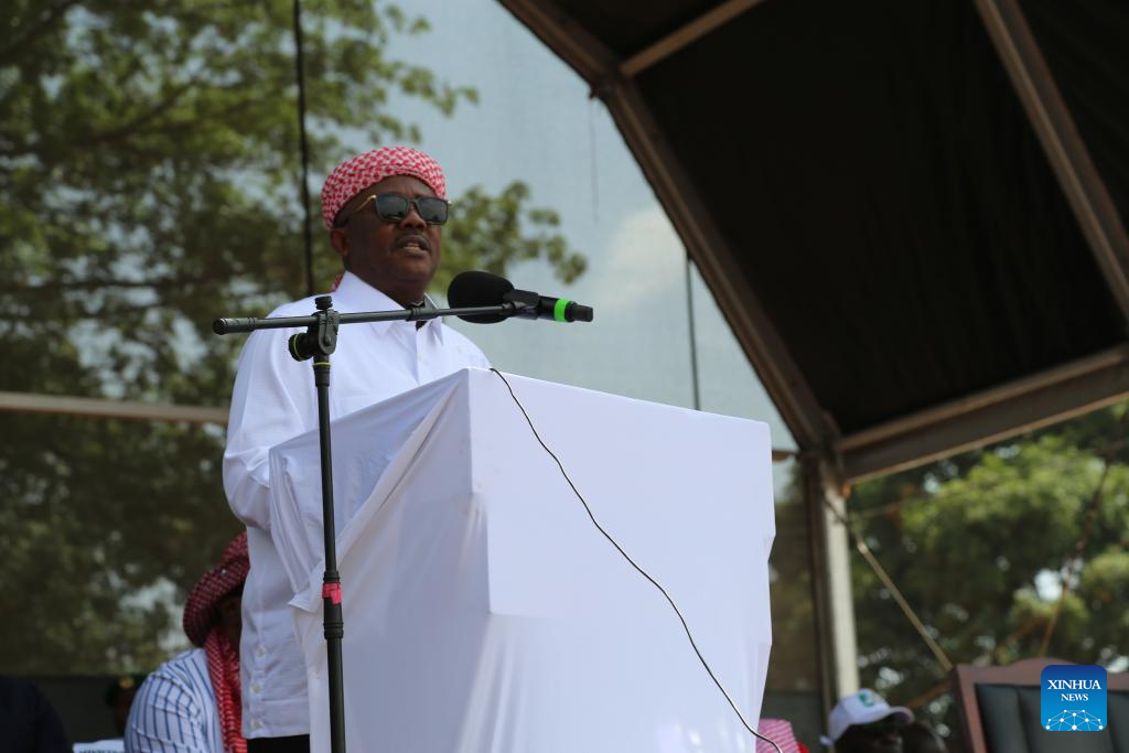 Bissau-Guinean President Umaro Sissoco Embalo speaks at the inauguration ceremony of a highway constructed by a Chinese company in Bissau, Guinea-Bissau, on June 16, 2025. (Xinhua/Zhang Jian)