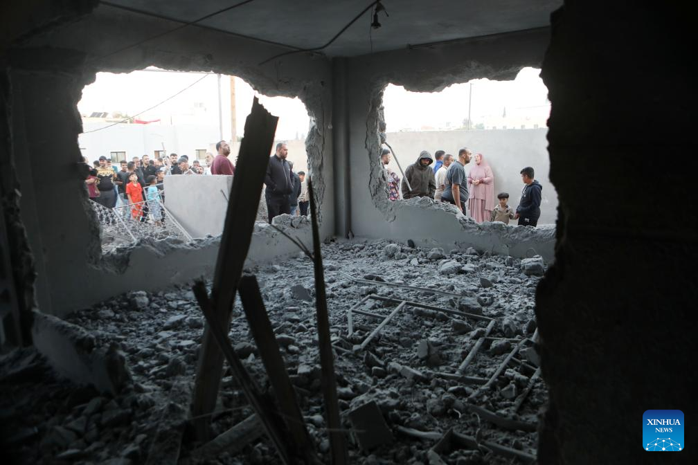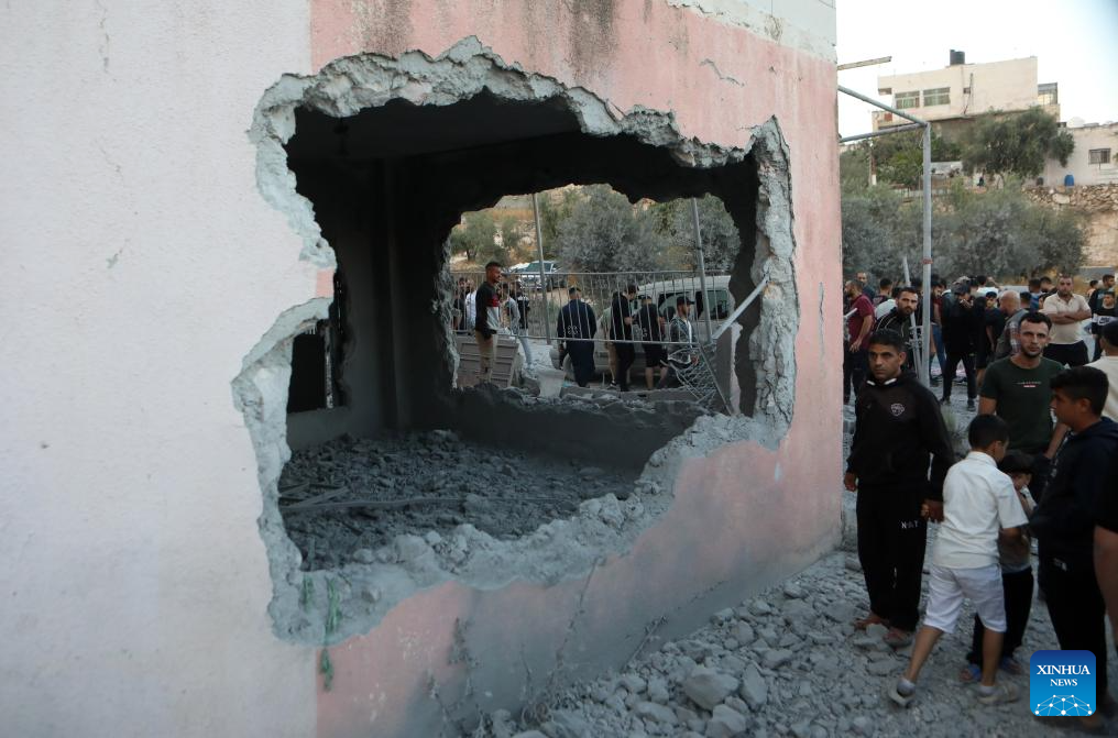 Palestinians inspect a damaged house in the village of Beit Awa, west of Hebron, southern West Bank, on June 17, 2025. (Photo by Mamoun Wazwaz/Xinhua)