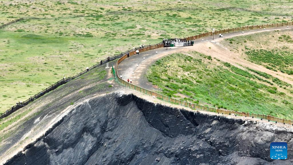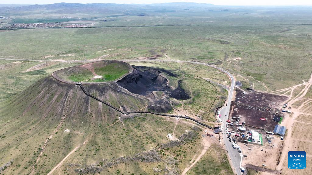 This photo taken on June 17, 2025 shows a volcano of the Ulanhada volcano cluster, Qahar Right Wing Rear Banner of Ulanqab, north China's Inner Mongolia Autonomous Region. The Ulanhada volcano cluster boasts special geological landscapes such as volcanoes and lava landform. With summer's arrival, it has entered the peak tourist season. (Xinhua/Ma Jinrui)