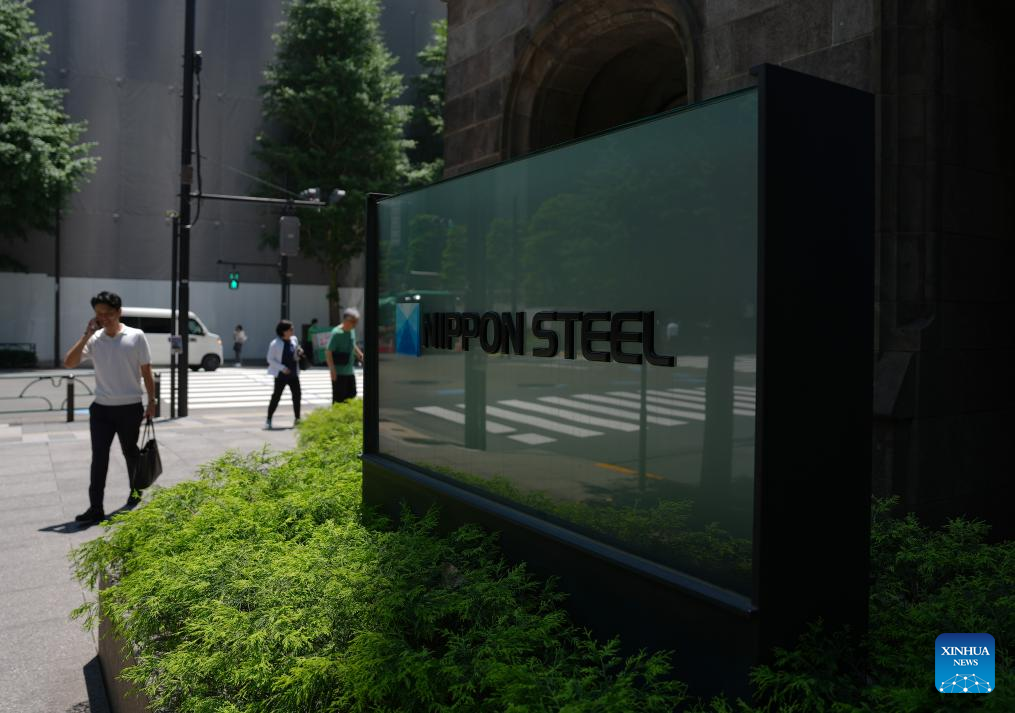 This photo taken on June 17, 2025 shows a logo of Nippon Steel in Tokyo, Japan. Nippon Steel announced Wednesday that it has officially completed its acquisition of U.S. Steel, making the American steelmaker a wholly owned subsidiary. (Xinhua/Jia Haocheng)