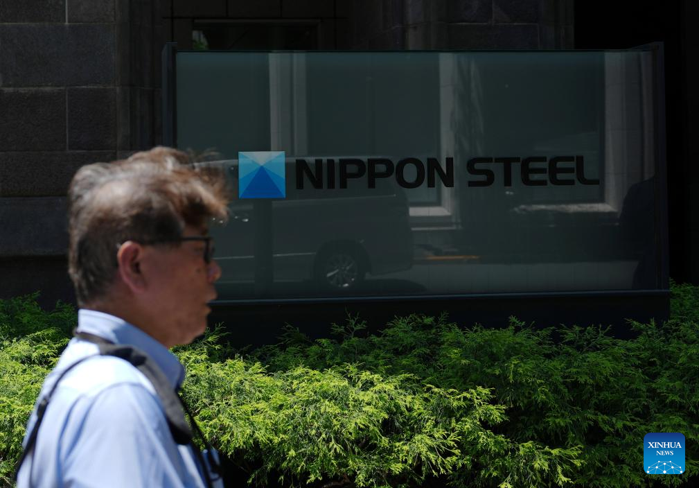 A man walks past a logo of Nippon Steel in Tokyo, Japan, June 17, 2025. Nippon Steel announced Wednesday that it has officially completed its acquisition of U.S. Steel, making the American steelmaker a wholly owned subsidiary. (Xinhua/Jia Haocheng)