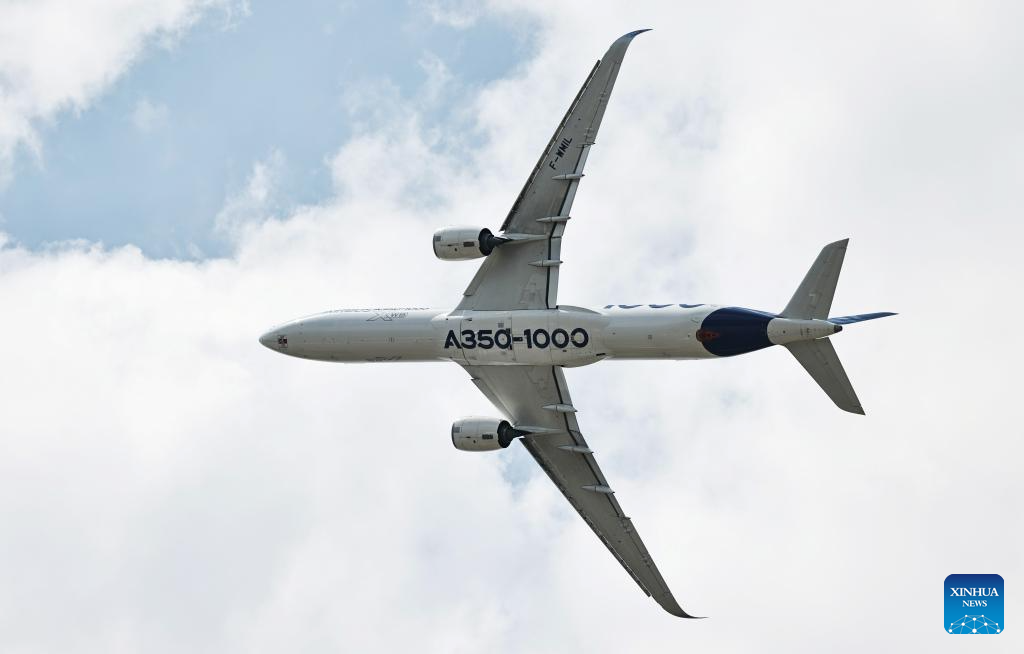 The 55th edition of the Paris Air Show officially opened on Monday and will run until June 22, with the participation of about 2,400 exhibitors from 48 countries and regions. (Xinhua/Gao Jing)