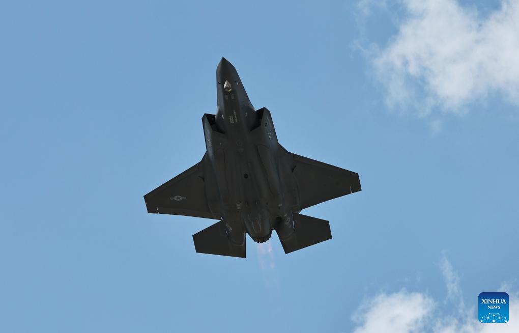 An F35 fighter jet is seen during an aerial show at the 55th Paris Air Show at Le Bourget Airport near Paris, France, June 17, 2025.