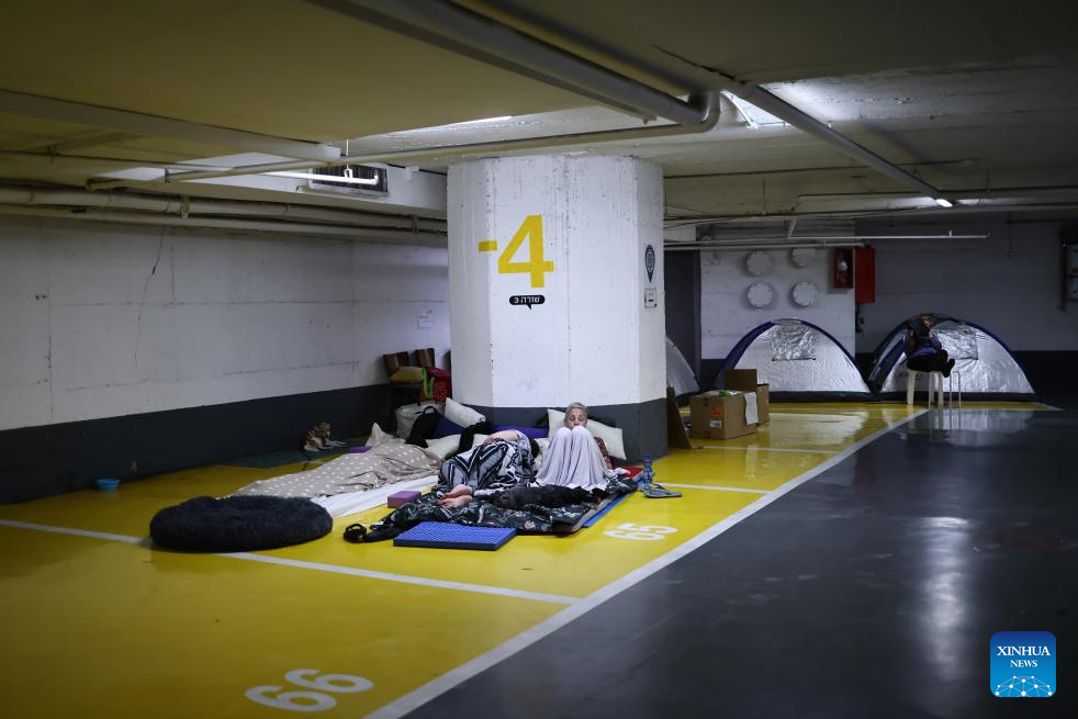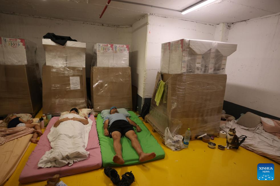 People are pictured at an underground bomb shelter in Tel Aviv, Israel, June 18, 2025. Several Iranian missiles were launched toward central Israel on Wednesday evening, as the conflict between the two countries entered its sixth day. (Photo by Jamal Awad/Xinhua)