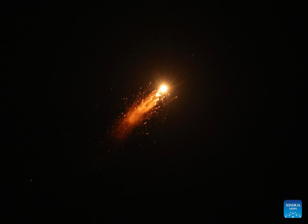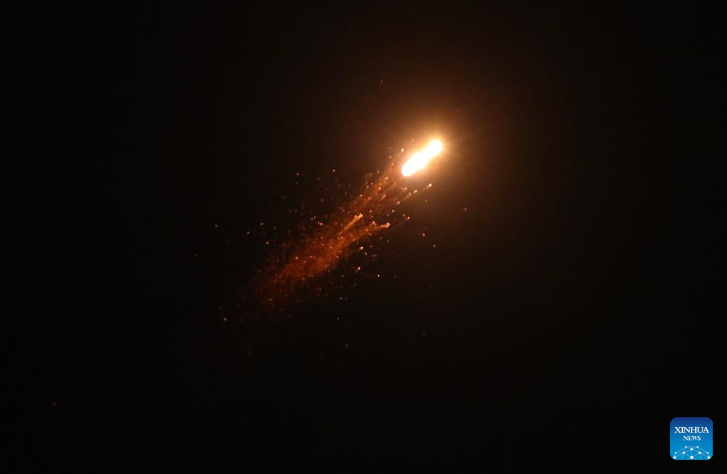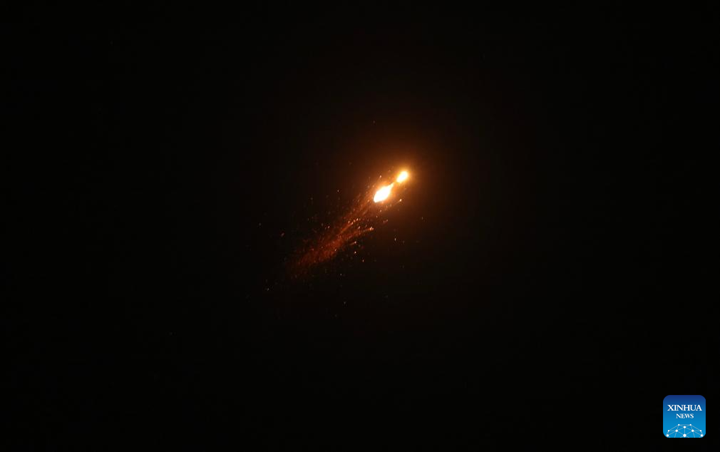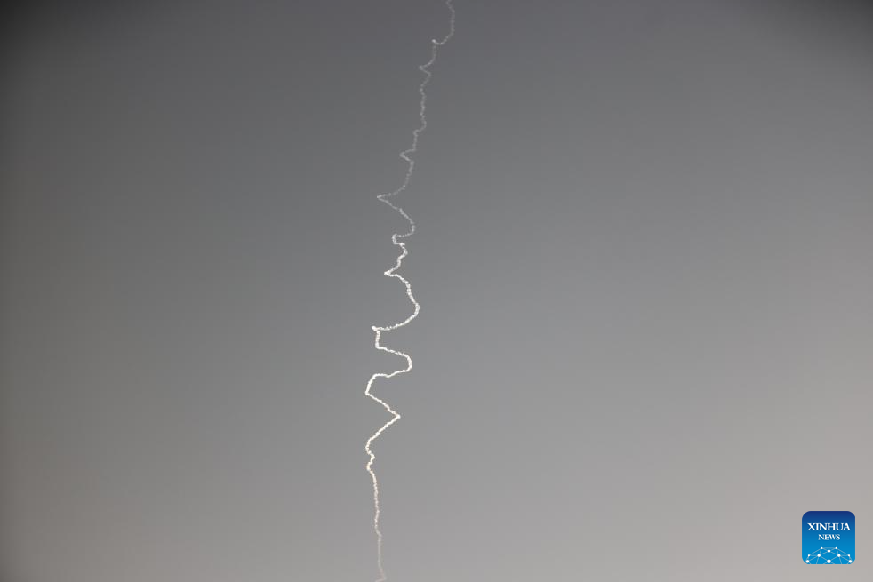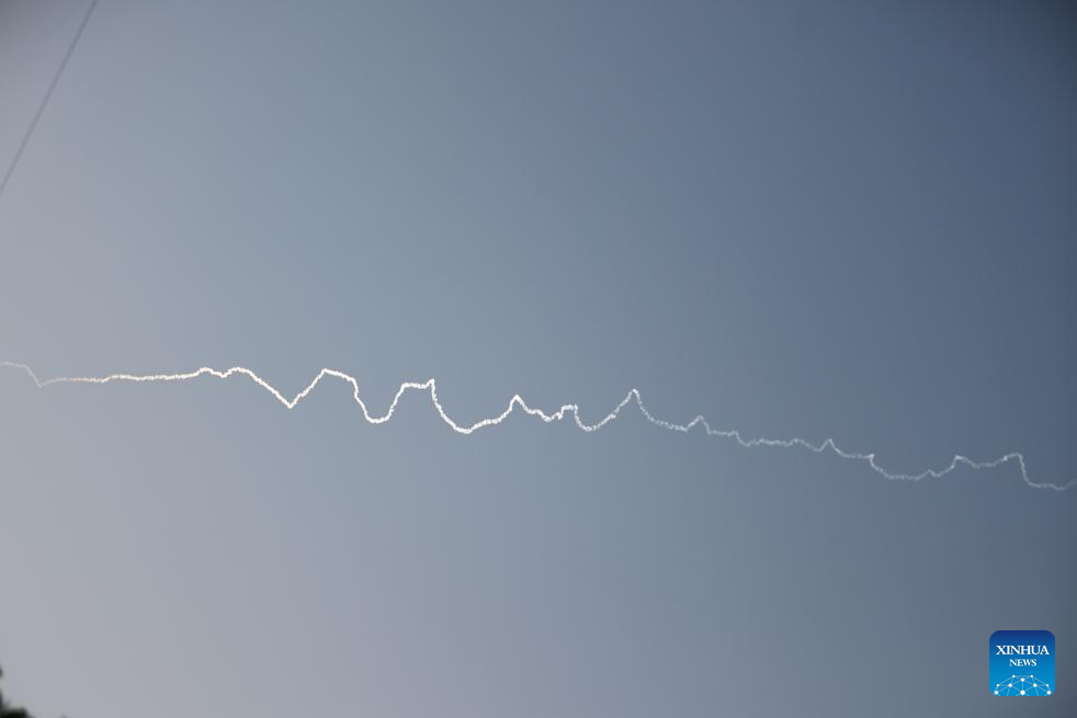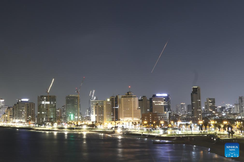 The Israeli military released a statement saying its air defense systems were operating to intercept a new missile attack launched from Iran, urging residents to enter shelters. (Photo by Jamal Awad/Xinhua)