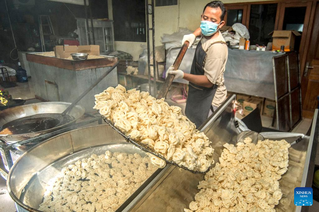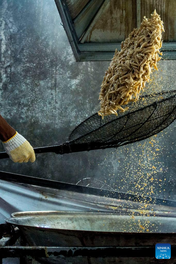 A worker fries fish crackers at a home workshop in Maguwoharjo, Yogyakarta, Indonesia, June 18, 2025. (Photo by Agung Supriyanto/Xinhua)