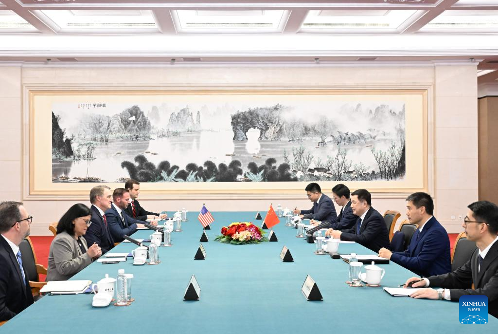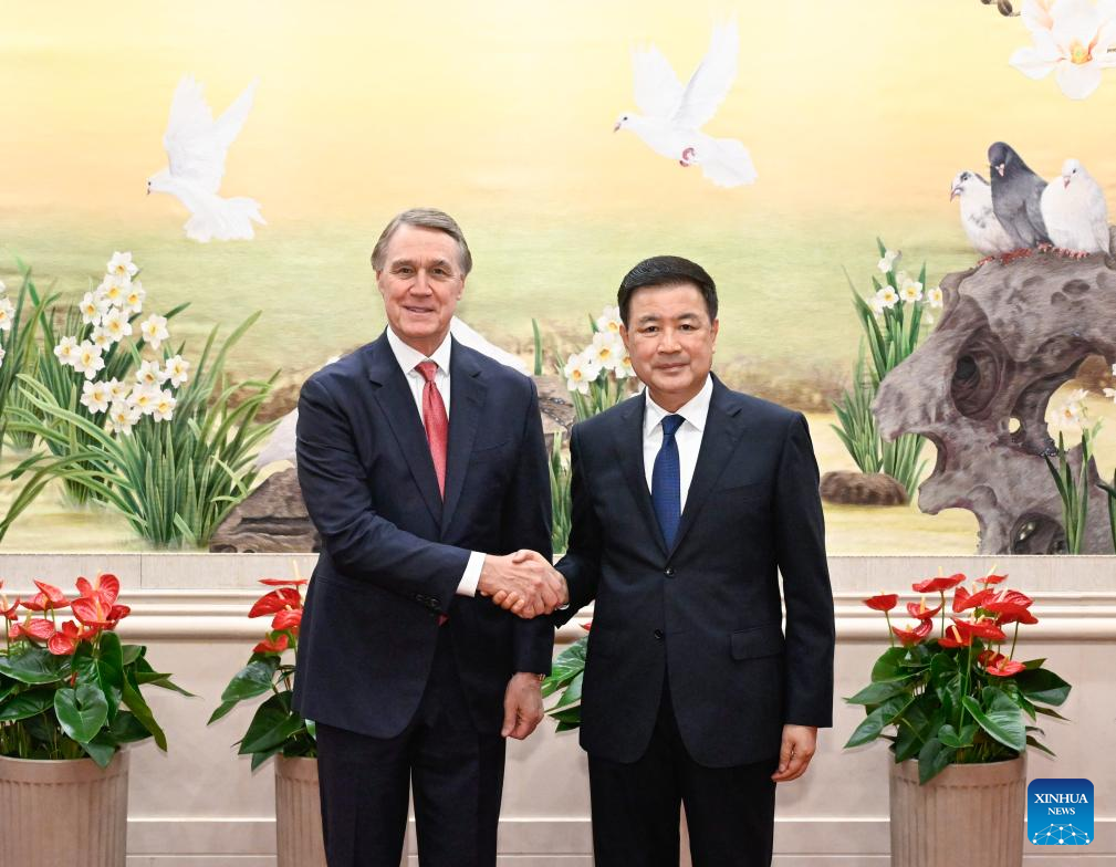 Chinese State Councilor and Minister of Public Security Wang Xiaohong meets with David Perdue, ambassador of the United States to China, in Beijing, capital of China, June 19, 2025. (Xinhua/Shen Hong)