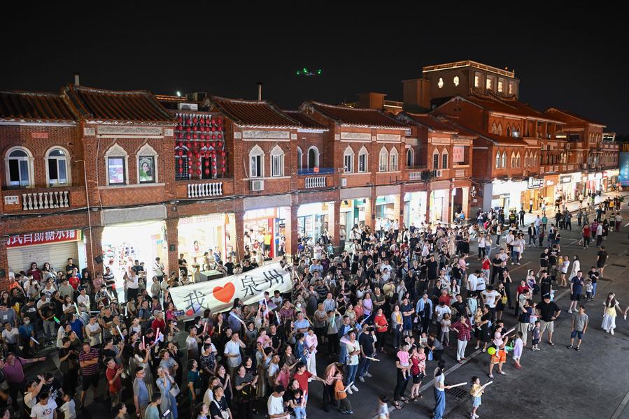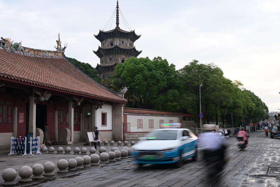 An aerial drone photo taken on May 21, 2025 shows a view of the historical center of Quanzhou, southeast China's Fujian Province. (Xinhua/Zheng Keren)An aerial drone photo taken on May 21, 2025 shows the Zhenguo Pagoda of Kaiyuan Temple in Quanzhou, southeast China's Fujian Province. (Xinhua/Jiang Kehong)This photo taken on May 21, 2025 shows the Kaiyuan Temple and Xijie, an ancient street area, in Quanzhou, southeast China's Fujian Province. (Xinhua/Wang Zecong)An aerial drone photo taken on May 20, 2025 shows a bell tower at the historical center of Quanzhou, southeast China's Fujian Province. (Xinhua/Zheng Keren)Tourists visit the historical center of Quanzhou, southeast China's Fujian Province, May 20, 2025. (Xinhua/Jiang Kehong)Tourists watch a performance at the historical center of Quanzhou, southeast China's Fujian Province, May 20, 2025. (Xinhua/Jiang Kehong)■