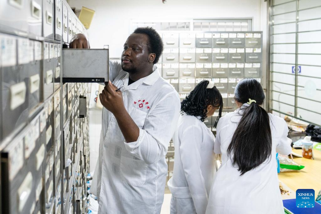 The school promotes cultural exchange globally while popularizing traditional Chinese medicine through courses including surgery, medicine, acupuncture, and tuina (therapeutic massage). (Xinhua/Chen Sihan)