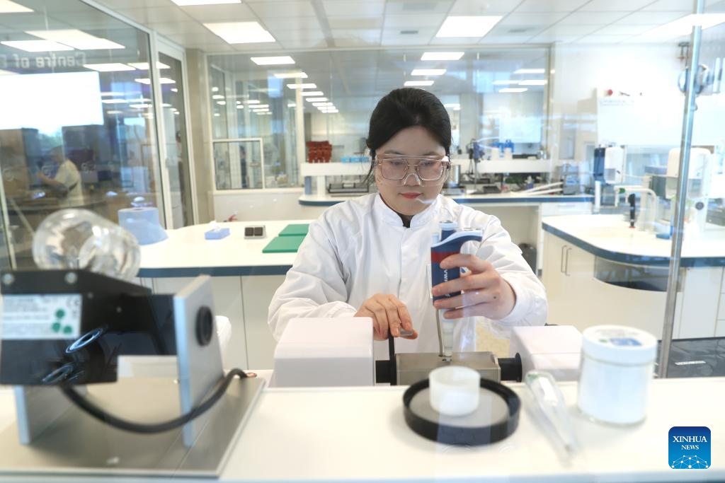 A staff member works at the Innovation Center Europe of China's Yili Group at Wageningen University in Wageningen, the Netherlands, on June 19, 2025. Laurence Rycken, director general of the International Dairy Federation (IDF), has praised China's progress in dairy innovation and scientific research, highlighting the complementarity and strong potential for deeper collaboration between the Chinese and European diary industries.(Xinhua/Zhao Dingzhe)