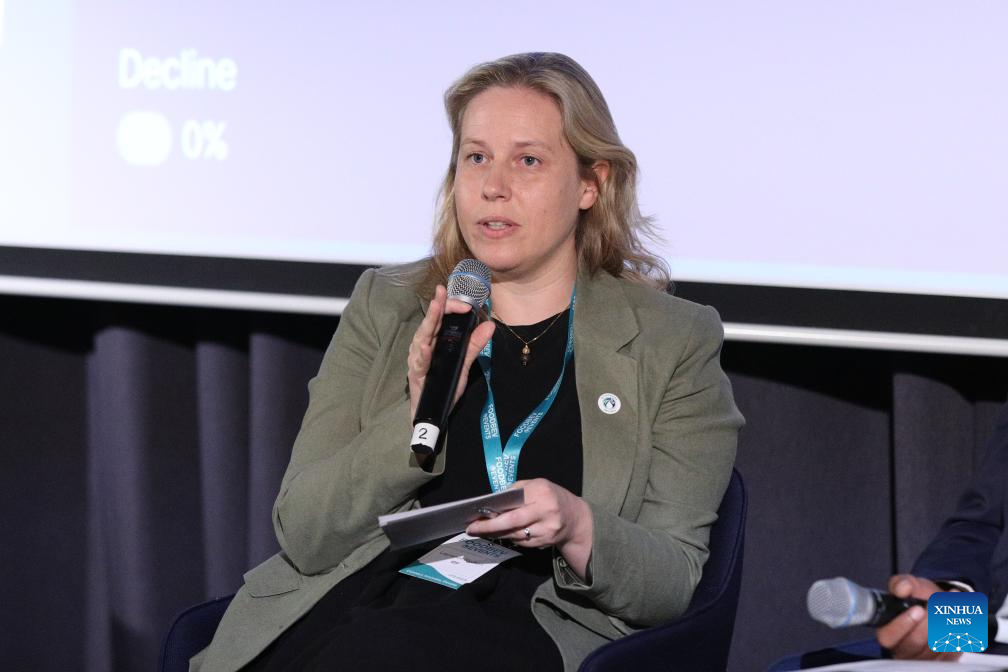 Laurence Rycken, director general of the International Dairy Federation (IDF), speaks during the 18th Global Dairy Congress in Amsterdam, the Netherlands, on June 18, 2025. Laurence Rycken, director general of the International Dairy Federation (IDF), has praised China's progress in dairy innovation and scientific research, highlighting the complementarity and strong potential for deeper collaboration between the Chinese and European diary industries.(Xinhua/Zhao Dingzhe)