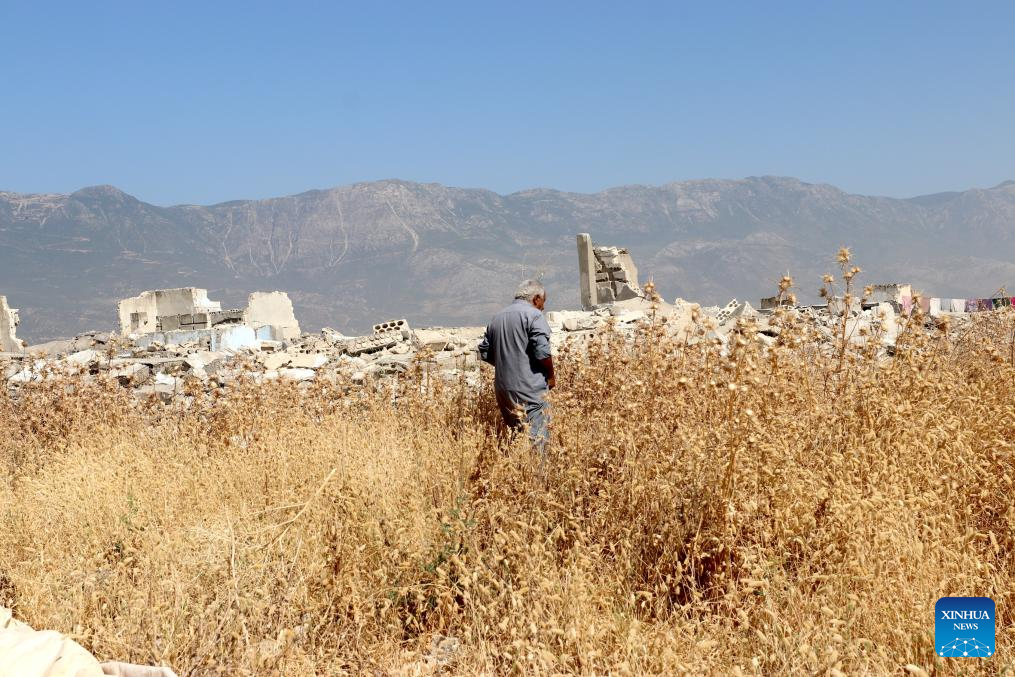 HAMA, Syria, June 20 (Xinhua) -- Perched among the rubble of his former home in the Hama countryside, 66-year-old Akram Mahmoud al-Shehada sits quietly, shaded only by a makeshift tent stitched together with tarpaulin and cloth. It's not much, but for him, it's home.