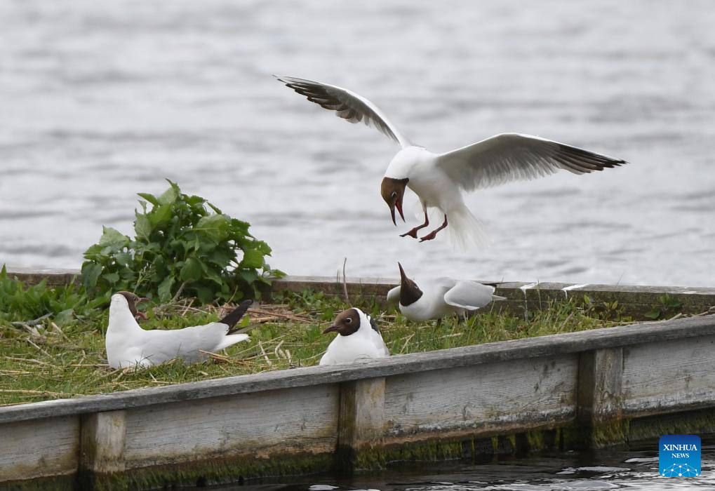 This photo taken on June 17, 2025 shows black-headed gulls at the Neusiedler See-Seewinkel National Park in Austria. (Xinhua/He Canling)