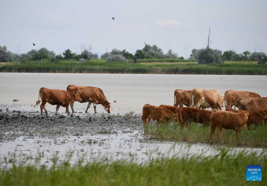 This photo taken on June 17, 2025 shows cattle at the Neusiedler See-Seewinkel National Park in Austria. (Xinhua/He Canling)