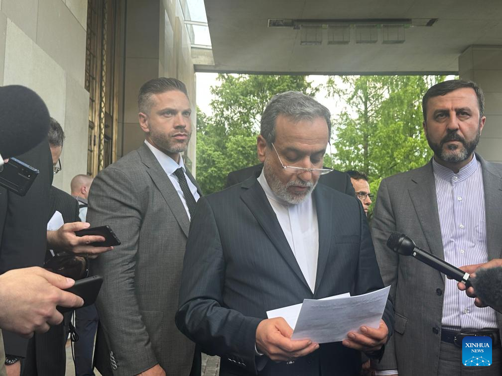 The meeting, held amongst Iranian Foreign Minister Seyed Abbas Araghchi, his counterparts from Britain, France and Germany (E3), as well as the European Union's (EU) top diplomat, lasted about three and a half hours. (Xinhua/Wang Qibing)