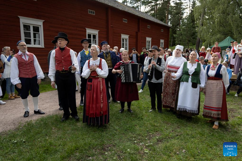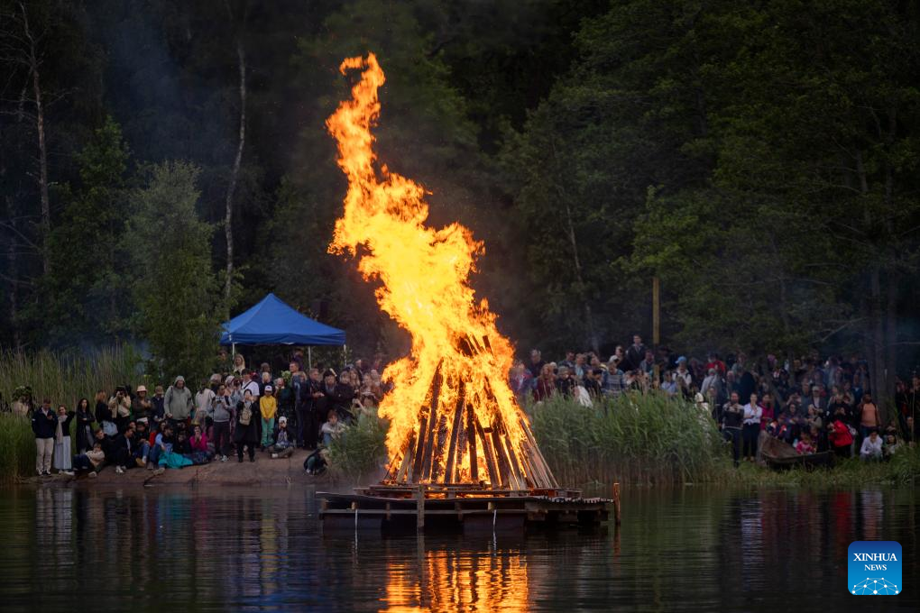HELSINKI, June 20 (Xinhua) -- Thousands gathered on Helsinki's Seurasaari Island Friday evening to celebrate Juhannus Eve, marking the start of Finland's cherished Midsummer Festival with bonfires and folk traditions.