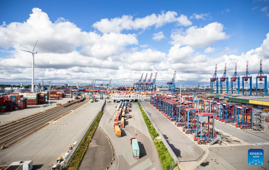 This photo taken on May 28, 2025 shows a view of the Container Terminal Tollerort in Hamburg, Germany. (Xinhua/Zhang Fan)