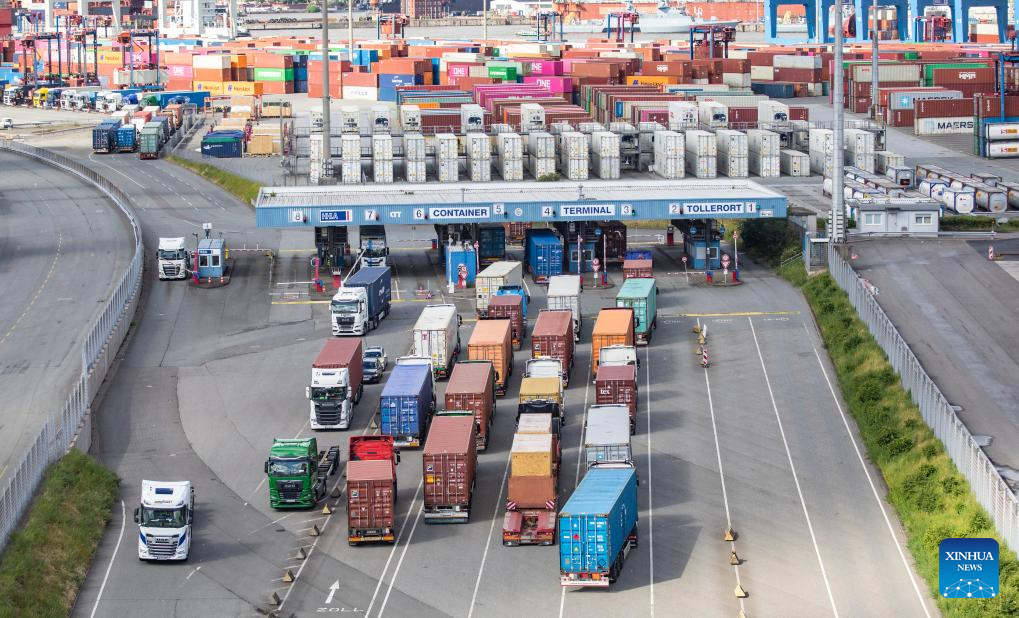 HAMBURG, Germany, June 20 (Xinhua) -- At a checkpoint in Germany's Hamburg industrial zone in early June, a long line of trucks crawled forward slowly, inching towards a bustling logistics hub.