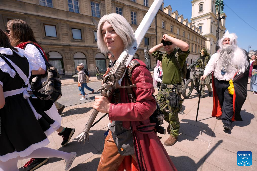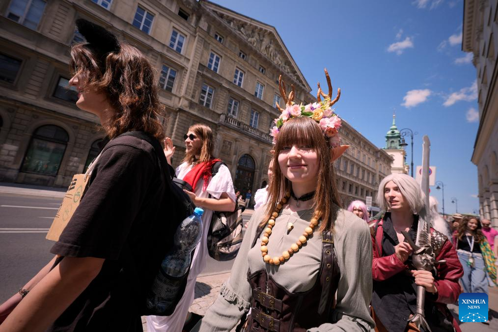 Cosplayers are pictured during the "Warsaw Cosplay Walk" event in the Old Town of Warsaw, Poland, June 21, 2025. (Photo by Jaap Arriens/Xinhua)