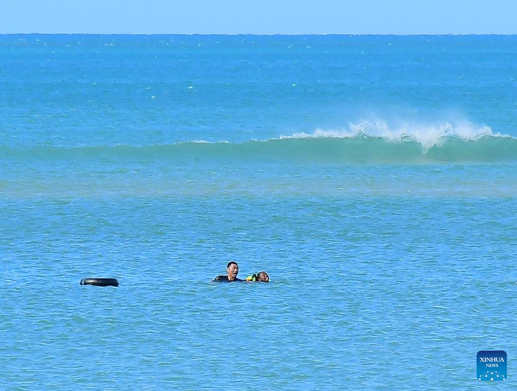 Zhang Junqiao (L) rescues a drowning woman off the coast of Dar es Salaam, Tanzania, June 15, 2025. (Xinhua)