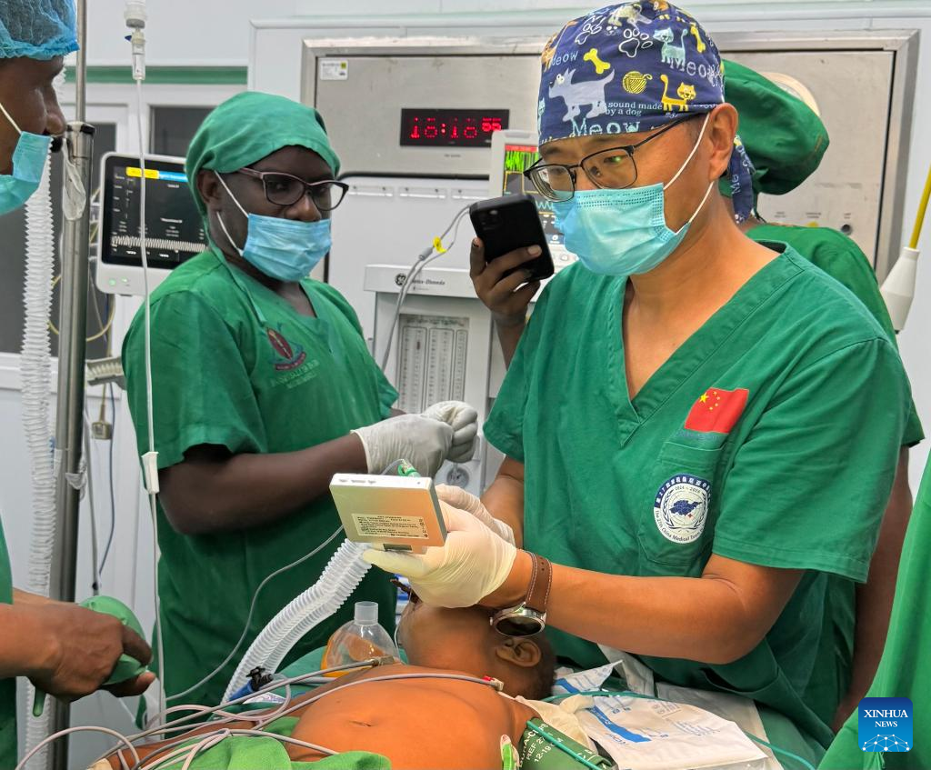 Zhang Junqiao (R) works in a surgery at Muhimbili National Hospital in Dar es Salaam, Tanzania, March 21, 2025. (Xinhua)