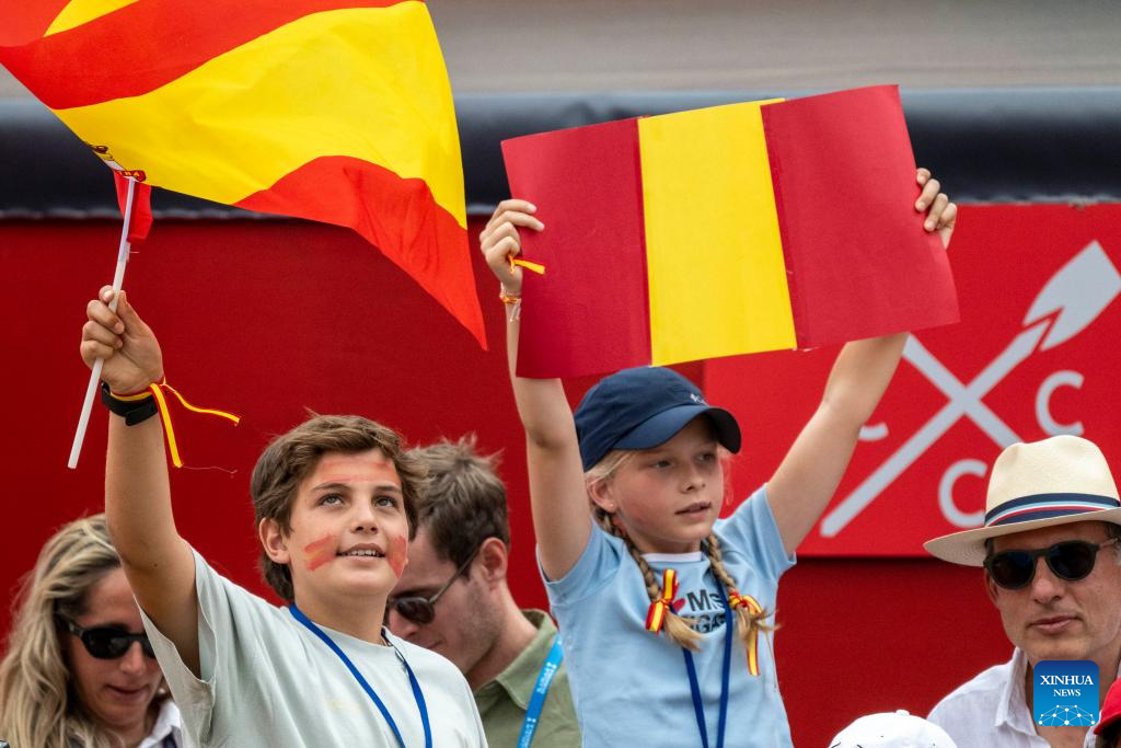 Fans cheer for Carlos Alcaraz during the men's singles final between Carlos Alcaraz of Spain and Jiri Lehecka of the Czech Republic at the Queen's Club Championships in London, Britain, on June 22, 2025. (Photo by Stephen Chung/Xinhua)