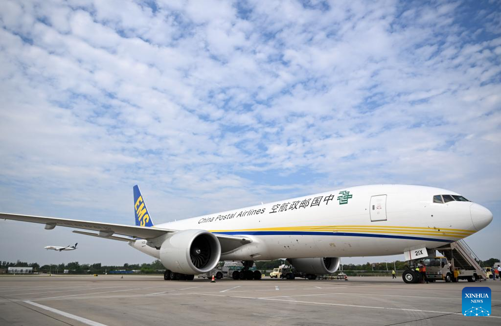A cargo plane of China Postal Airlines from China's Zhengzhou to Luxembourg is pictured before its maiden flight at Zhengzhou Xinzheng International Airport in Zhengzhou, central China's Henan Province, June 23, 2025.