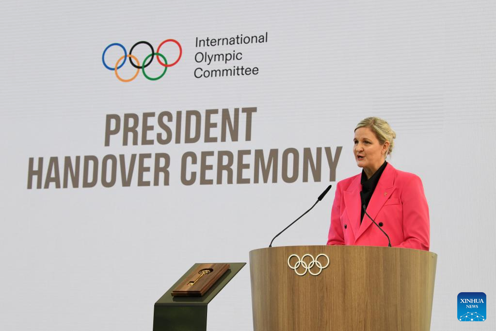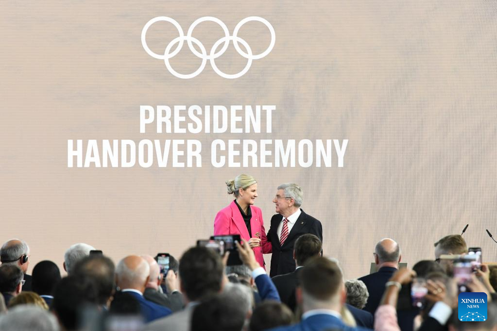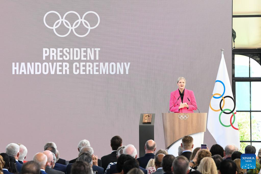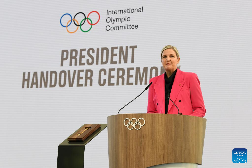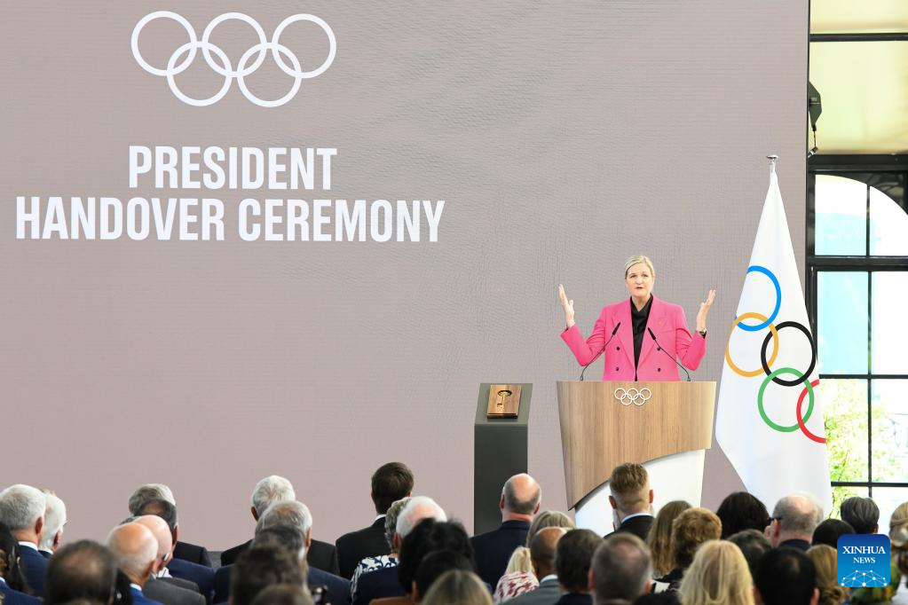 LAUSANNE, June 23 (Xinhua) -- Zimbabwe's Kirsty Coventry took over the presidency of the International Olympic Committee (IOC) from Thomas Bach on Monday during a handover ceremony at the IOC headquarters in Lausanne, Switzerland.