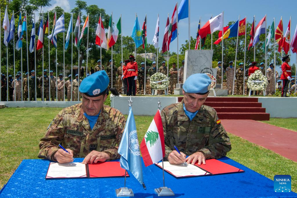 This photo shows the handover ceremony of United Nations Interim Force in Lebanon (UNIFIL) held in Naqoura, Lebanon, on June 24, 2025.