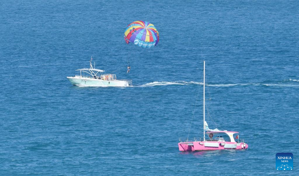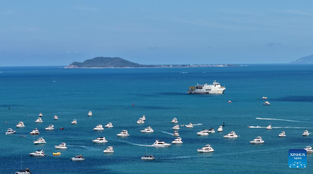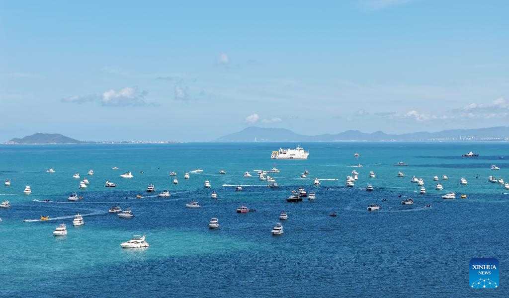 Tourists take yachts to have fun in Sanya, south China's Hainan Province, June 24, 2025. As the 2025 summer travel peak season approaches, the waters in Sanya have gathered a variety of yachts, attracting many domestic and international tourists to experience yacht excursions, and enjoy the vibrant energy and refreshing coolness of the coastal city. (Xinhua/Zhao Yingquan)
