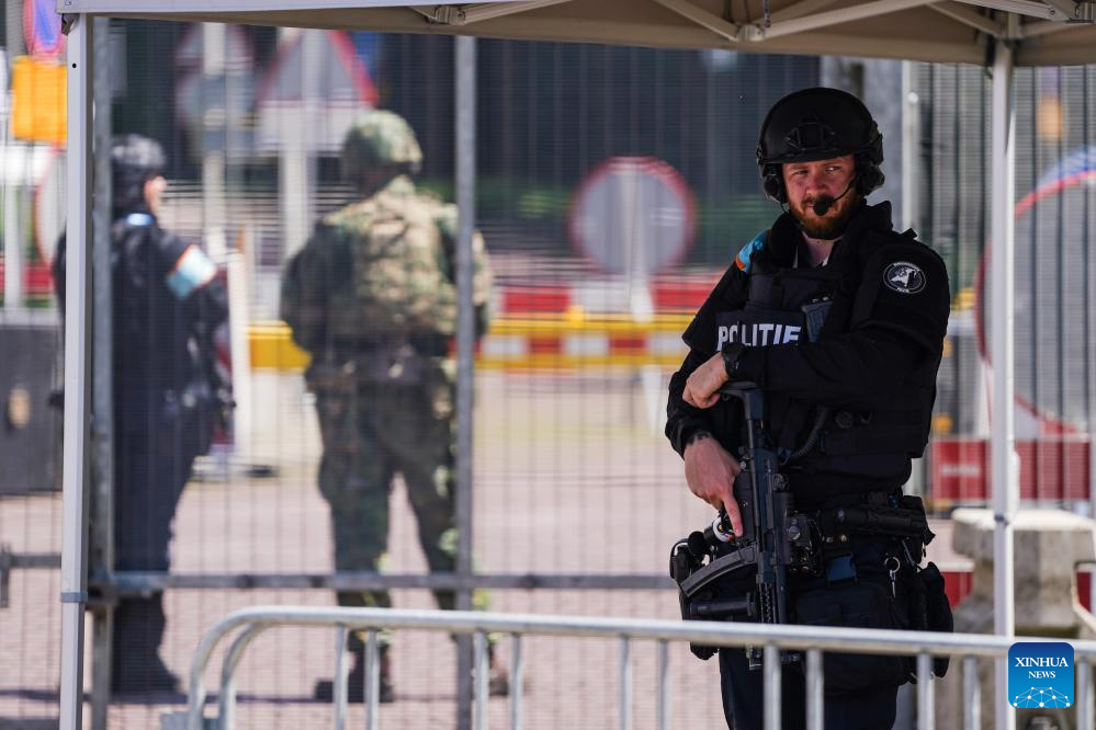The security forces are on duty outside the venue of the North Atlantic Treaty Organization (NATO) summit in The Hague, the Netherlands, June 23, 2025. The NATO summit is scheduled to be held in The Hague from June 24 to 25 this year. (Xinhua/Peng Ziyang)