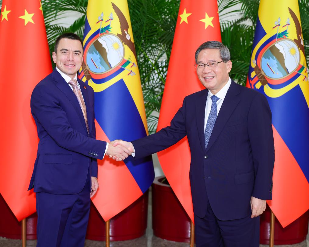 China is willing to enhance the docking of development strategies with Ecuador, strengthen cooperation under the Belt and Road Initiative, expand the scale of bilateral trade, and deepen cooperation on clean energy, infrastructure, and finance, Li said.