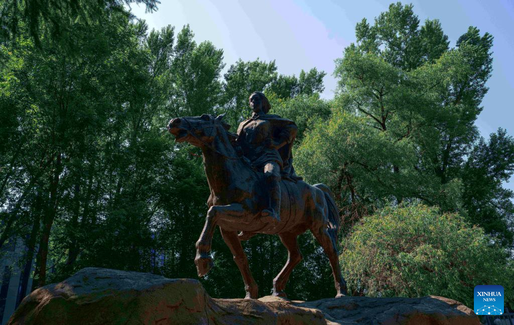 This photo taken on June 23, 2025 shows a statue of Zhao Yiman, a revered war heroine, in the city of Shangzhi, northeast China's Heilongjiang Province. (Xinhua/Cai Yang)