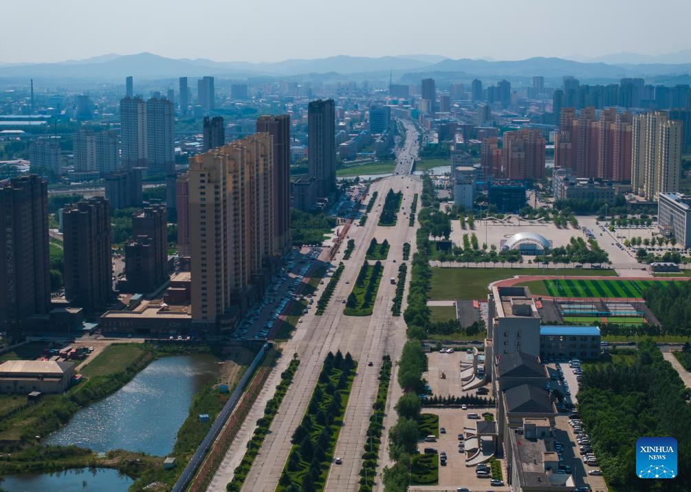 An aerial drone photo taken on June 23, 2025 shows a view of the city of Shangzhi, northeast China's Heilongjiang Province. (Xinhua/Cai Yang)