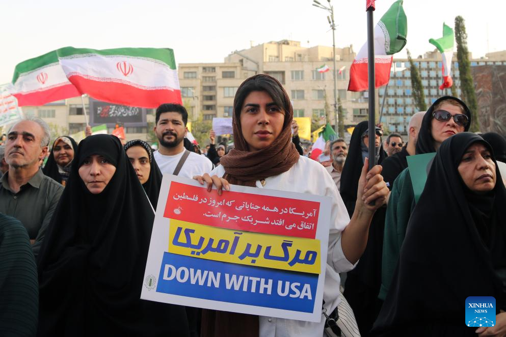 People celebrate the ceasefire between Iran and Israeal at Enghelab Square in Tehran, Iran, on June 24, 2025. The ceasefire was declared on Tuesday. (Xinhua)
