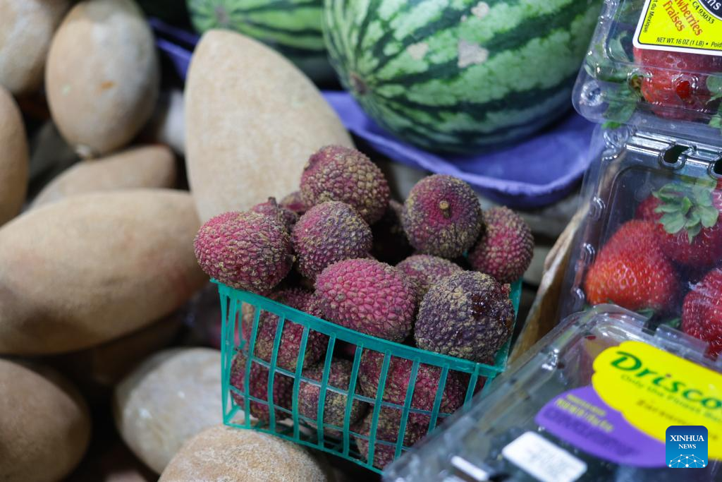 Lychees are sold at a market stall in Mexico City, capital of Mexico, June 24, 2025. (Photo by Francisco Canedo/Xinhua)