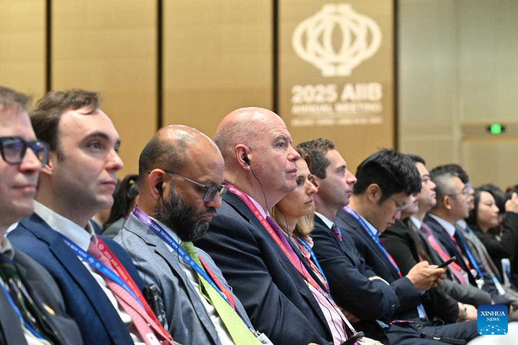 This photo taken on June 26, 2025 shows the 10th Annual Meeting of the Asian Infrastructure Investment Bank (AIIB) Board of Governors in Beijing, capital of China. Under the theme of "Connecting for Development, Collaborating for Prosperity" and participated by over 3,500 guests from about 100 countries and regions, the 10th Annual Meeting of the AIIB Board of Governors held its opening ceremony in Beijing on Thursday. (Xinhua/Li Xin)