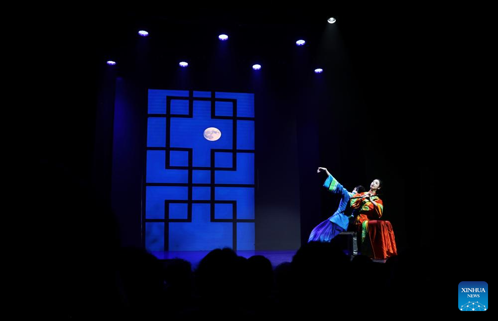 A traditional Chinese dance show is staged at the Theatre of the Eiffel Tower in Paris, France, June 24, 2025. (Xinhua/Gao Jing)