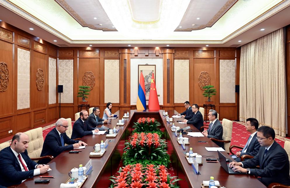 Chinese Foreign Minister Wang Yi, also a member of the Political Bureau of the Communist Party of China Central Committee, holds talks with Armenian Minister of Foreign Affairs Ararat Mirzoyan in Beijing, capital of China, June 26, 2025. (Xinhua/Yin Bogu)