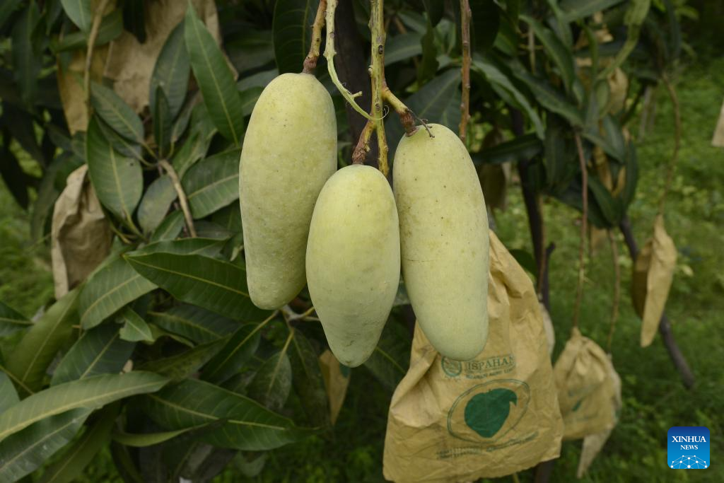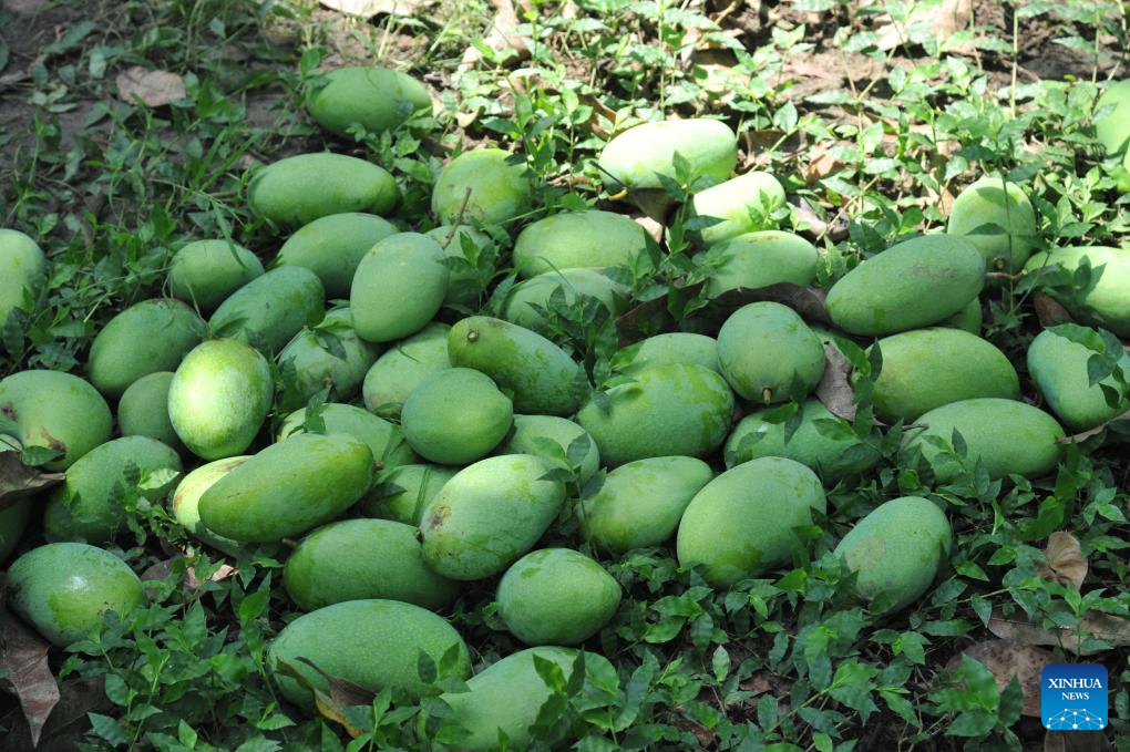 This photo taken on June 25, 2025 shows mangoes in a orchard in Rajshahi, Bangladesh. Rajshahi is famous for producing high-quality mangoes across Bangladesh during the mango season from May to August. (Xinhua)