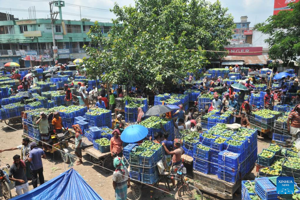 This photo taken on June 25, 2025 shows a mango wholesale market in Rajshahi, Bangladesh. Rajshahi is famous for producing high-quality mangoes across Bangladesh during the mango season from May to August. (Xinhua)