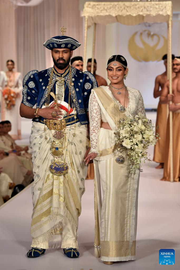 A model presents a creation during an exclusive bridal and fashion show in Colombo, Sri Lanka, on June 24, 2025. (Photo by Gayan Sameera/Xinhua)