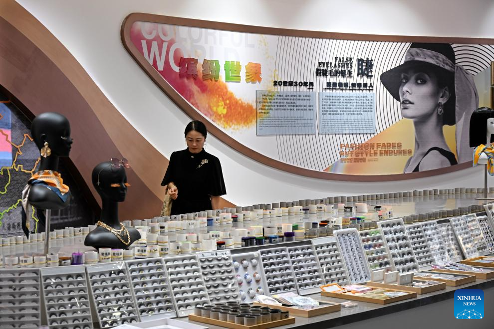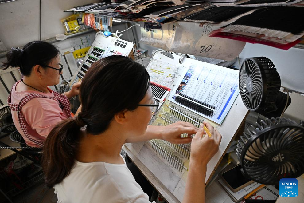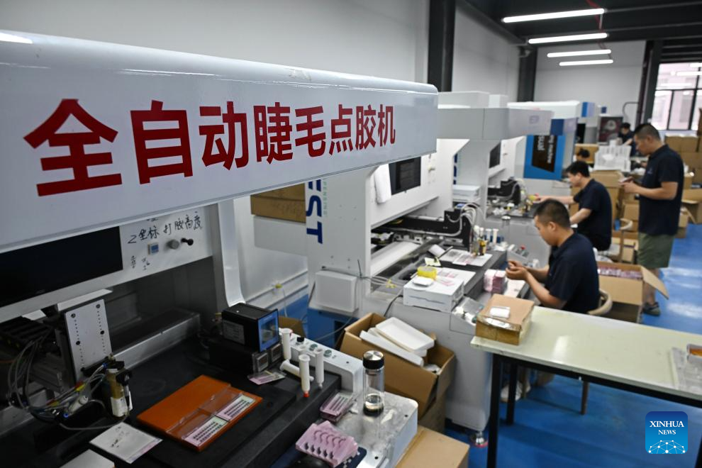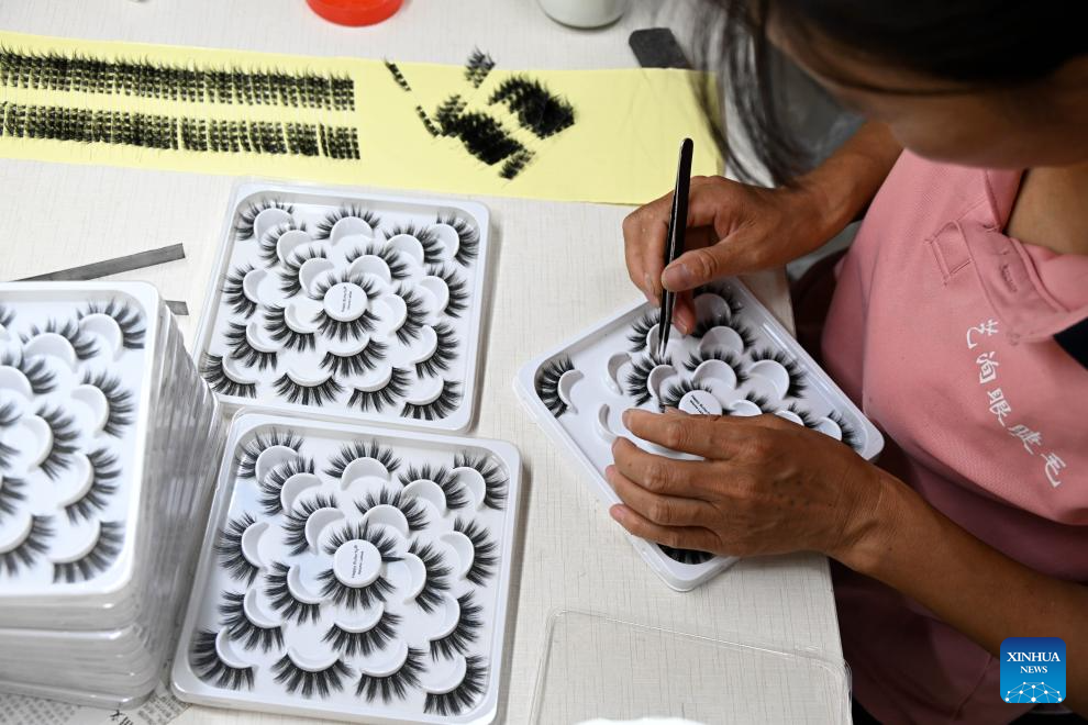 In recent years, by rolling out targeted fiscal and tax policies, cultivating e-commerce and introducing talents, local government has stepped up efforts in the development of the false eyelash industry. (Xinhua/Li Ziheng)